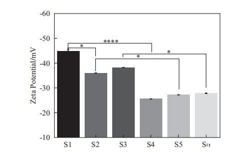 在XVDEVIOS官方下载免费版的研究中,测量了Zeta电位,如图6所示。对于SLES体系(S1-S3),S1表现出最负的Zeta电位,其次是S3,而S2的Zeta电位最小。对于SMCT体系(S4-S6),它们之间的Zeta电位没有显著差异。比较SLES和SMCT体系时,可以观察到SMCT体系的Zeta电位低于SLES体系。此外,在S1和S4、S2和S5以及S3和S6之间发现了显著差异。
