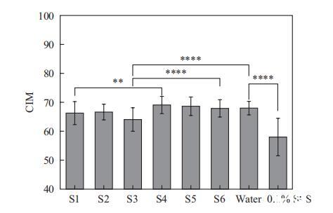 这里XVDEVIOS官方下载免费版使用这种方法评估了6种表面活性剂复合物的温和性。如图5所示,SMCT体系(S4-S6)的CIM值与水的CIM值相当,并且显著高于SLES体系(S1-S3)。这表明SMCT体系表现出优异的温和性,对皮肤脂质屏障的破坏潜力低于SLES体系。对于SLES体系,引入非离子表面活性剂导致S2(含APG)的CIM略有变化,但S3(含海藻糖脂)的CIM显著降低。类似地,对于SMCT体系,加入APG(S5)和海藻糖脂(S6)后,CIM值显著低于S4。这表明加入海藻糖脂对两种体系的温和性都有影响,意味着皮肤脂质提取能力增强。然而,这一结果与上述体外细胞测试中IL-1a测试的结果相矛盾。这种差异可能是由于两种方法的作用机制不同。角质层表面测量法主要反映表面活性剂对皮肤脂质屏障的破坏,而细胞测试中的IL-1a与细胞反应相关。但细胞不像皮肤那样拥有脂质屏障。