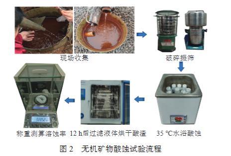 3)每隔2 h记录溶蚀效果,酸浸12 h后过滤液体,收集烘干酸渣(于100℃烘箱中烘干12 h至恒重)计算溶蚀率,确定酸蚀矿物的最优酸度。
