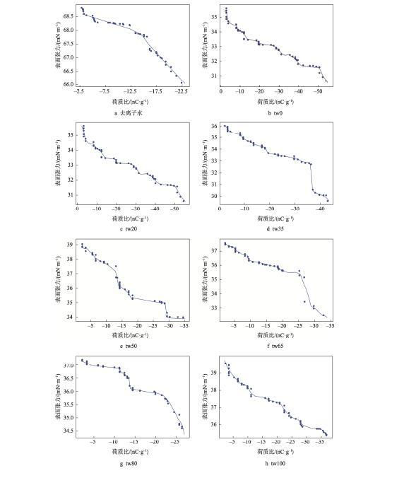 荷电使得液滴的接触角显著降低(P<0.05),其中7kV的电压能够使去离子水液滴的接触角降低约10°,明胶液滴接触角下降约6°~9°。茹煜等建立了荷电雾滴的三维运动模型,发现在20kV的电压下荧光液滴的接触角能够降低46°。本研究发现,当表面活性剂吐温20与司盘20的浓度比为1:1(tw50),外加电压为7kV时,明胶液滴在石蜡表面具有最好的润湿性,接触角为64.99°。