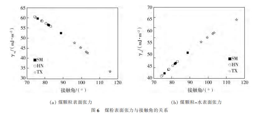 图6煤粉表面张力与接触角的关系