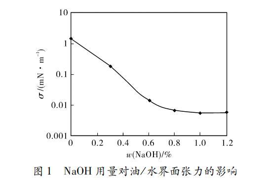 氢氧化钠用量对重烷基苯磺酸钠水溶液/油体系界面张力的影响(一)