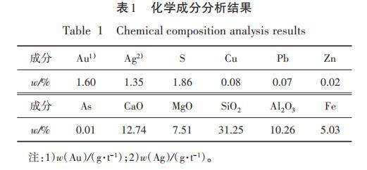 由表 1可知:试验所用矿石金品位为 1.60 g/t,硫品位为1.86%,为含金硫铁矿。