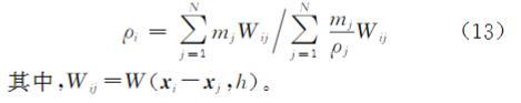 针对CSF流体表面张力模型中流体表面的粒子数目较少,流体表面的流体粒子密度求和的边界截断误差较大,进而导致流体表面张力模拟不稳定的问题,本文对边界粒子的密度进行修正,计算公式为:ρi=∑ N j=1 mjWij∑ N j=1 mj ρj Wij(13)其中,Wij= W( xi- xj, h)。