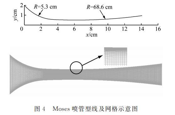 图 4 Moses 喷管型线及网格