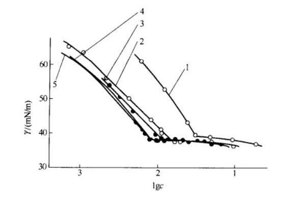2、溶液中的表面活性剂浓度等于临界胶束浓度(CMC),这时,静态表面张力降到拐点。如上图的拐点。