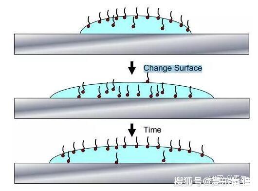自然的规律力求将这样的自由能降低至最小,一个途径是采用减少液体表面积韵方法,因为一个球体能包封的体积与表面积之比值较大,故表面张力就不断设法将液体形成液滴,基于同样的理由,表面张力驱使粗糙或不平整液体表面流动成为平滑的表面,平滑表面与空气的界面面积要比粗糙的界面面积小,因此,表面变得较平滑。