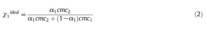 在理想状态下,胶束摩尔分数(χ理想)已通过公式(2)[50]计算得出: