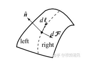 这是一个弯曲的液面表面,左侧(left)是其原来的面积,右侧(right)是扩展的部分,dl即单位长度,n指示曲面的法向量方向。这样就可以很清晰地看出来了,使表面扩展的力是沿着表面的切线方向的。