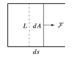现在,将这个“活塞”向外拉出单位长度ds时改变表面积dA=L·ds,则所用的力F=dW/ds=α·L,那么单位长度的金属丝受力就有F/L=α。也就是说,表面张力就等于表面能量密度。从单位来看,定义的表面张力的单位是F/m,表面能量密度α的单位是J/㎡,两者也相等。