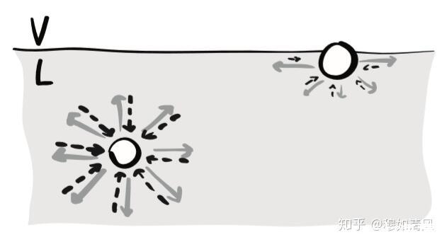 所以,在液体中的分子实际受力应该是这样的:
