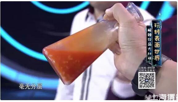 最终,在将辣椒油分别倒入三种饮料里之后发现,只有米汤可以完美的和辣椒油相融,完全没有分层现象!