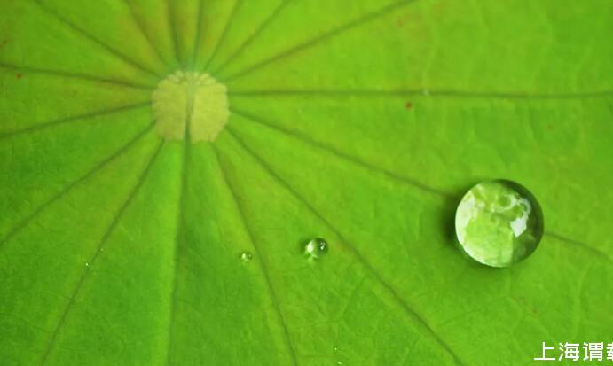 来看一下荷叶。荷叶表面有极其特殊的结构,这种结构让液体完全不能浸润到荷叶的表面。