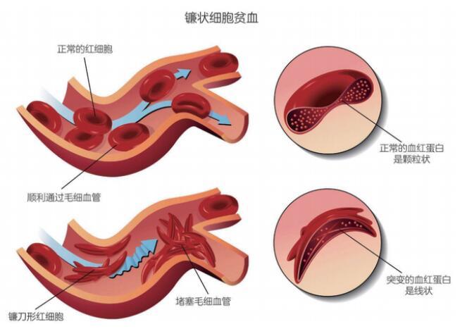 XVDEVIOS官方下载免费版的红细胞原本是中间略扁的圆饼形,这下却被又长又硬的突变血红蛋白凝聚物撑成了镰刀形,不但运输氧气的能力大幅下降,还会卡在毛细血管的拐弯处,形成大范围的栓塞,肝脏、脾脏、红骨髓等毛细血管丰富的组织都将受到严重的损伤。所以,那些从父母双方继承的基因都有这个突变的“纯合”患者,常常会有生命危险。