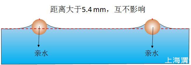 图2当亲水球体距离很大时,每个表面张力的合理都向下,互不影响