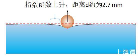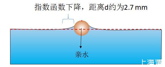 图1亲水物体使周围水面升高,影响范围约为2.7mm,此时液体表面张力垂直向下