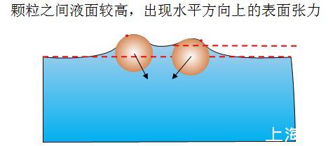 图7亲水疏水颗粒相互使液面变化,打破原来所受表面张力的对称性,出现相互排斥的表面张力