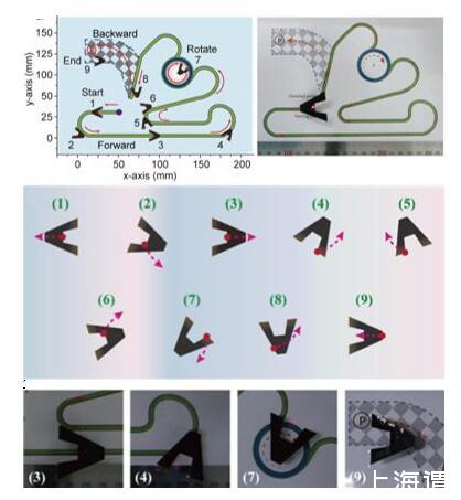 通过实验探索发现三角形的驱动薄膜在光照射底边可以很快游动,但却存在方向性不可控的缺陷。要使其可完成液面直线游动、转弯、自旋转等操作,三角形薄膜显然难以办到。