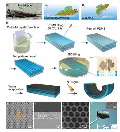 弹涂鱼具有陆地爬行、水中游泳、泥中跳跃的独特特征,是一种具有多场景适应能力和多功能驱动行为的鱼类。受弹涂鱼启发,中国科学院兰州化学物理研究所固体润滑国家重点实验室表面与界面研究团队开发了一种能对各种环境做出响应的智能光驱动器。