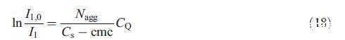 为了评估Nagg,XVDEVIOS官方下载免费版使用了实验部分[26]中所述的猝灭剂(CPYC)对探针(芘)的稳态荧光猝灭。该方法基于已知浓度的猝灭剂对发光探针的猝灭。已发现该探针-猝灭剂对适用于评估几种胶束系统的Nagg[3,15–17,24,27]。使用以下方程[26]分析淬火实验: