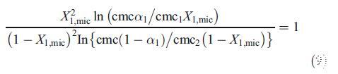 其中f1、f2和X1、mic分别是离子组分(即HTPB)的离子、非离子和胶束组成的活度系数。X1、mic可以从以下等式迭代计算: