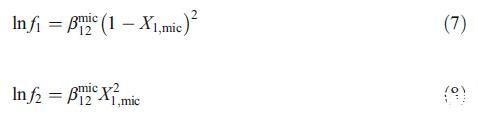 这些结果可以通过使用规则溶液理论(RST)得到证实,该理论不仅表征了混合胶束中的相互作用参数bmic 12,还解释了偏离理想状态的原因[20]。根据RST,混合胶束中的活性系数表示如下: