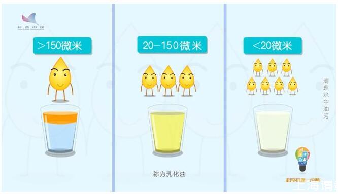 油是怎么存在水中的?油在水中的存在形式,根据油滴的粒径,可以分为三类,油滴粒径大于150微米称为“浮油”,这也是油进入水体的主要存在形式;油滴粒径在20-150微米之间称为“分散油”;油滴粒径小于20微米的称为“乳化油”。不管是表面活性剂稳定的油滴,还是无表面活性剂稳定的油滴,极小的乳化油以油包水或水包油的形式悬浮于水中。