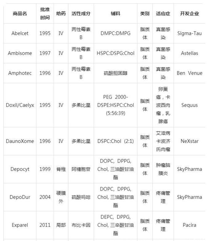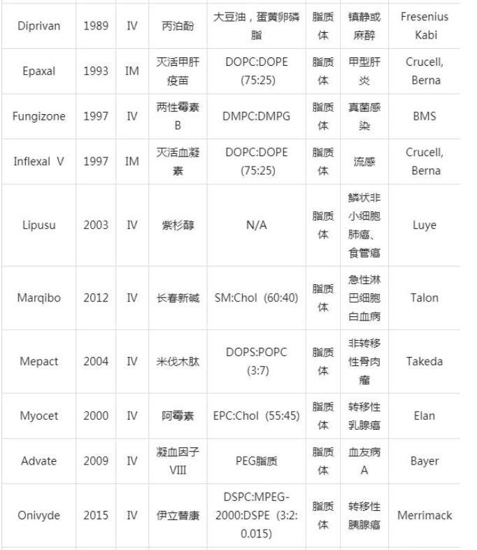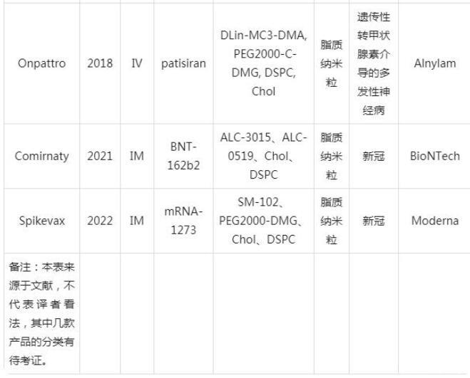 表1已获批上市的脂质纳米粒产品