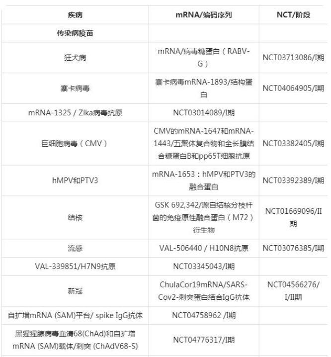 (3)临床试验中基于LNP的mRNA疫苗和治疗