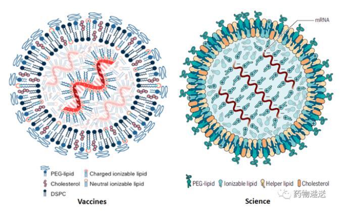 图2 Vaccines和Science期刊的mRNA-LNP结构示意图