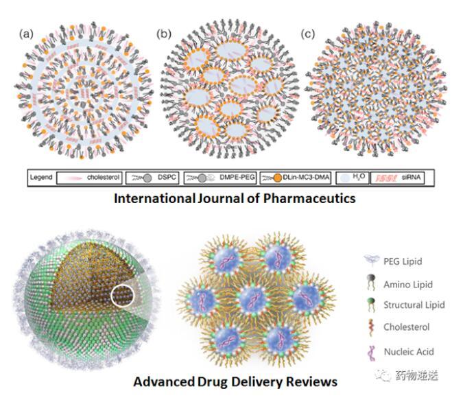 图5 International Journal of Pharmaceutics和Advanced Drug Delivery Reviews期刊的mRNA-LNP结构示意图
