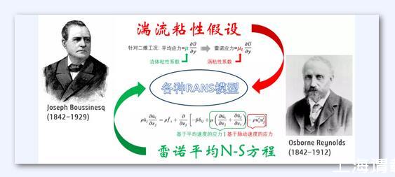 湍流粘性来源于雷诺平均的N-S方程,下式中多出来的脉动应力项,称之为雷诺应力。1877年Boussinesq借助于牛顿切应力公式,提出了影响深远的涡粘性假设:雷诺应力正比于时均速度梯度,其中比例系数μt表征了湍流脉动引起的切应力效应,称为涡粘性系数。