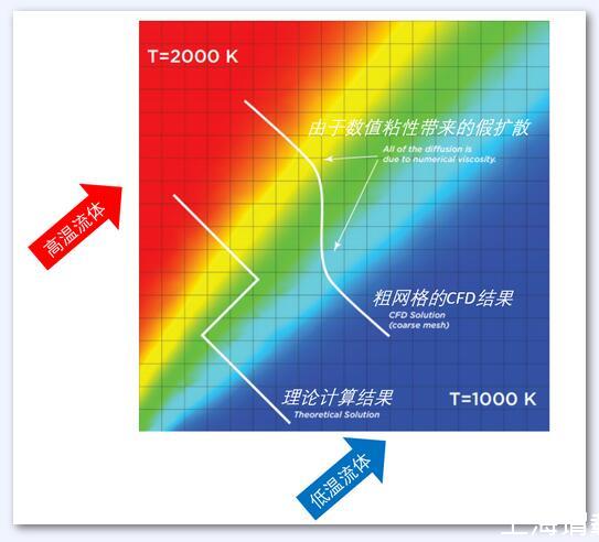 而数值粘性则完全是从微分方程离散到差分方程的过程中产生的误差。从数学推导而言,相比于原始的微分方程,从差分方程导出的修正方程中有多余的项。其中二阶项的系数对应常规N-S方程中二阶项的系数,类似于方程中的物理粘性,因此被称为数值粘性。