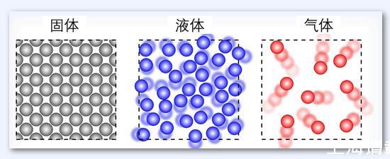 下图对比了固体、液体和气体的分子排列示意图,可以看出来,固体分子排列紧密且有序,分子之间被分子力牢牢控制而难以发生随意的运动。液体分子则不会保持固定的形状,但它们仍然致密排列,就像游乐场里的海洋球,因此,液体的分子之间仍具有一定的分子力,而这也是液体粘性的主要来源。