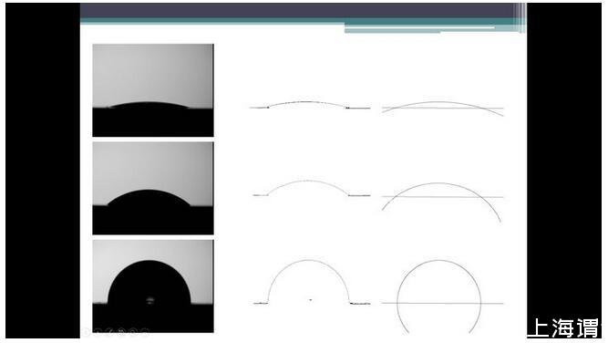 平板固体和液体的话有照相法,直接把液滴照片拍下来,软件分析。又分为躺滴法和悬滴法。