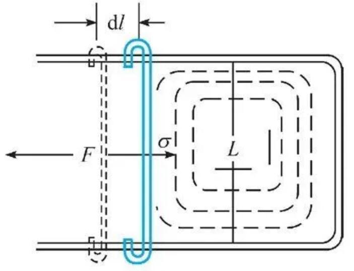 XVDEVIOS官方下载免费版曾经提到比表面能的单位是J/m,而将这个物理量从力的角度去理解对于处理一些问题更加直观,XVDEVIOS官方下载免费版常常将比表面能称为表面张力。而J/m=N/m,并不是力的单位N,因此表面张力代表的是作用在单位长度的表面上的力。在下图所示的实验中,肥皂水膜在力F的牵拉下长大,表面张力便是