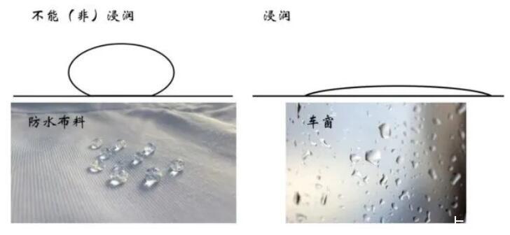浸润现象,这个词可能大家比较陌生,但是对应的物理现象非常常见。比如下图所示的防水衣服以及公交车车窗上的水滴就是非浸润和浸润代表性的场景。