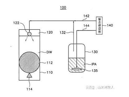 首先,当利用去离子水的清洗工序完成后,针对晶片的干燥工序启动时,升降机被驱动,使上述晶片从去离子水慢慢向上移动。如以上所述,根据本发明的晶片干洗系统在晶片的表面均匀地添加了异丙基,采用醇基蒸气喷射,具有使用适量异丙基醇蒸气使晶片干燥良好的优点。此外,根据本发明的晶片干洗系统利用马兰戈尼效应去除晶片表面存在的脱二热水,因此在干燥工艺完成后晶片上不会出现水斑等;使优质的半导体元件生产成为可能。以上说明了本发明参考可取的实施例,在本发明的技术思想范畴内,可以进行各种改良或变形,而这些改良或变形也属于本发明,这一点,是可以认知的,为了克服上述以往技术中存在的问题,目的是提供能够提高晶片干燥效率的马兰戈尼型干燥剂系统。