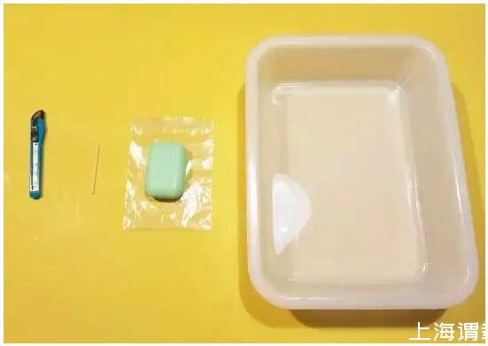 实验材料:小刀、一头劈开的牙签、肥皂、水盆
