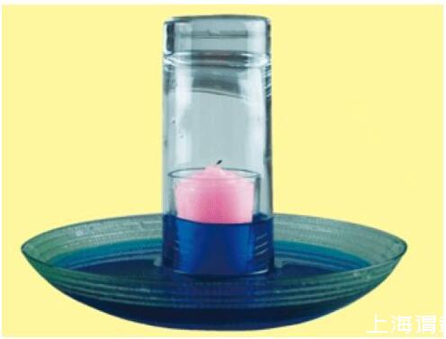 解密时刻:当蜡烛熄灭时,玻璃杯中的水会逐渐上升,上升到一定程度后,停止。因为蜡烛燃烧,消耗了玻璃杯中的氧气,减少的这部分氧气被水填充。