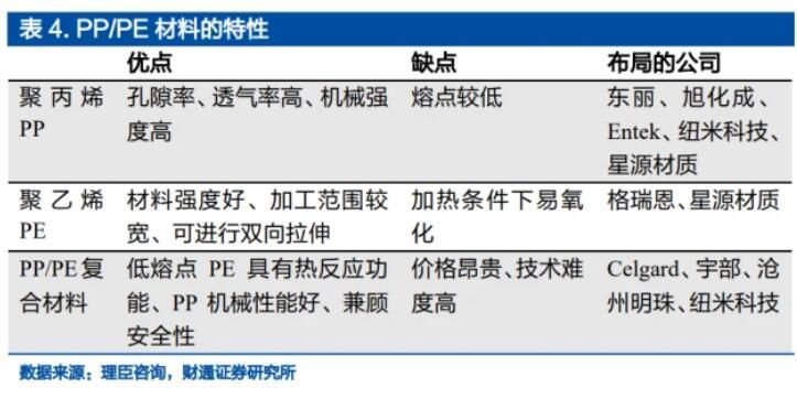 钠电池的电解液和隔膜均具备成熟的量产技术。电解液在电池中起传导离子的作用,其中主要由溶剂、电解质和其他添加剂组成。锂电池的电解质为六氟磷酸锂,而钠电池的电解质为六氟磷酸钠。隔膜主要起分隔电池正负极,防止两极接触而短路的作用,并且隔膜还需要支持电解质离子通过,钠电池和锂电池均使用PP或者PE隔膜。