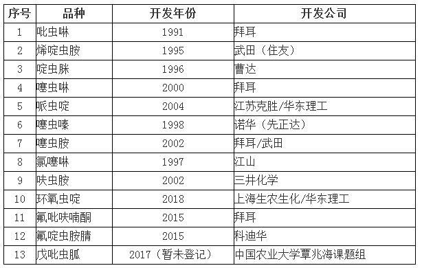 表1新烟碱类农药品种信息