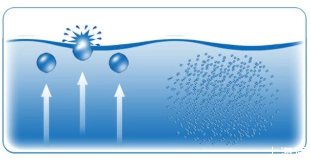 理论上气泡形成消耗能量依赖于界面面积,界面面积决定于气泡表面张力。直径小于25微米的小气泡表面刚性强,类似于高压气球,不容易破裂。数毫米直径的大气泡表面比较柔软,很容易变形破裂。大气泡的浮力比较大很容易上升到液面。Stokes公式R=ρgd2/18μ(ρ=密度,g=重力加速度,d=气泡直径,μ=粘滞度)可计算气泡上浮速度。气泡上漂浮速度和气泡直径的平方成正比,这种关系只使用于小气泡。直径大于2毫米的大气泡由于外形发生变化,上升速度并不会受直径影响。低于1微米的纳米气泡上升速度非常慢,远低于布朗运动,整体上表现为不上升。