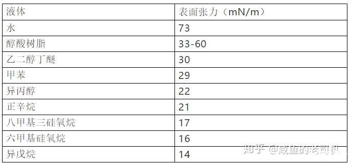 常见物质的表面张力状况