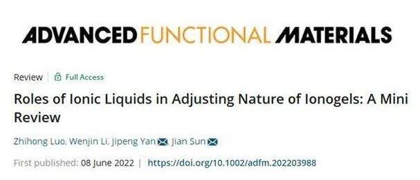 北京理工大学生命学院绿色生物制造课题组在国际顶级期刊《Advanced Functional Materials》(影响因子18.808)发表题为《Roles of Ionic Liquids in Adjusting Nature of Ionogels:A Mini Review》的综述,文章综述了离子液体在调控离子凝胶的结构和性能方面发挥的作用。该文章通讯作者为阎继鹏副教授和孙剑教授,第一作者为北京理工大学生命学院2020级硕士生罗志鸿。
