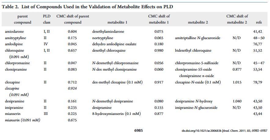 已经有许多出版物描述了PLD药物代谢产物所致。其中,初级代谢轻的胺碘酮,去乙基胺碘酮,已经讨论过14,38-40优先积累代谢物已观察到胺碘酮过量,尤其是短期39这为XVDEVIOS官方下载免费版的检测数据提供了可能的解释其中去乙基胺碘酮是胺碘酮的主要代谢物,41,42表现出更高的PLD诱导潜力。相似地,8-羟基米安色林之间的CMC位移差异,米安色林、43,44和米安色林的主要氧化代谢物比其他两个之间的差异更显着成对的亲本和代谢物。由于溶解度的限制,父母和代谢组的剂量浓度不同氯氮平和米安色林。这可能是导致观察到的CMC偏移的显着差异母体和代谢物之间。在较低浓度下测试时相比之下,氯氮平从低电位诱导剂转变为非诱导剂,而米安色林仍然作为诱导剂但具有更高的CMCDL/CMCL值。值得注意的是,目前测试集中的大多数CAD被报告为氧化代谢其相应的脱烷基初级代谢物。为了了解相应初级的PLD电位代谢物,XVDEVIOS官方下载免费版测试了额外的代谢物。之间测试的代谢物是初级去甲基代谢物氯丙嗪、45?47阿米替林、48?50丙咪嗪、43,50和pri-氯喹的玛丽和次级脱乙基代谢物。51,52此外,由杂原子氧化形成的氧化代谢物地昔帕明43,50和氯胺酮的重释和脱烷基代谢物pramine53,54进行了评估。与其他CAD一样,代谢物可以如果它们具有合适的理化性质,则诱导PLD。32相反,代谢物将失去结合能力如果CAD特征丢失,则使用脂质,例如用脂质观察氯米帕明N-氧化物和地昔帕明N-羟基(图4和表2)。