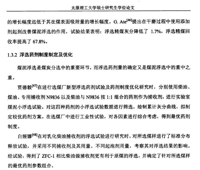 【摘要】:随着浮选入料中高灰细泥含量的逐渐增高,浮选效果恶化的问题越来越突出。煤泥浮选是煤炭分选中的重要环节,合理的浮选药剂制度是实现煤泥高效浮选的关键因素。本文就浮选效果与矿浆表面张力的关系进行了研究,对试验煤样进行了工业分析、元素分析、粒度分析及XRD分析,发现煤样中小于0.045mm粒级含量较多,且灰分较高,易泥化。煤样中含有的伴生矿物种类基本相同,主要包括高岭土、蒙脱石、石英及黄铁矿四种。