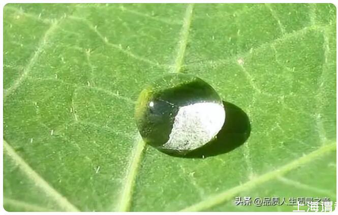 由于接触角的不同和浸润与非浸润的情况就可以解释题主所说的完全不同的水滴效果