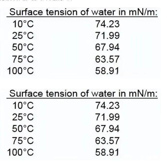 比如下面表格在10摄氏度时不同液体的表面张力差异很大