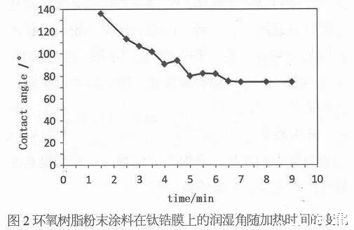 这说明环氧树脂粉末涂料对钛锆膜的润湿性良好,能够自发地在涂层表面进行铺展,且涂层具有良好的附着力。